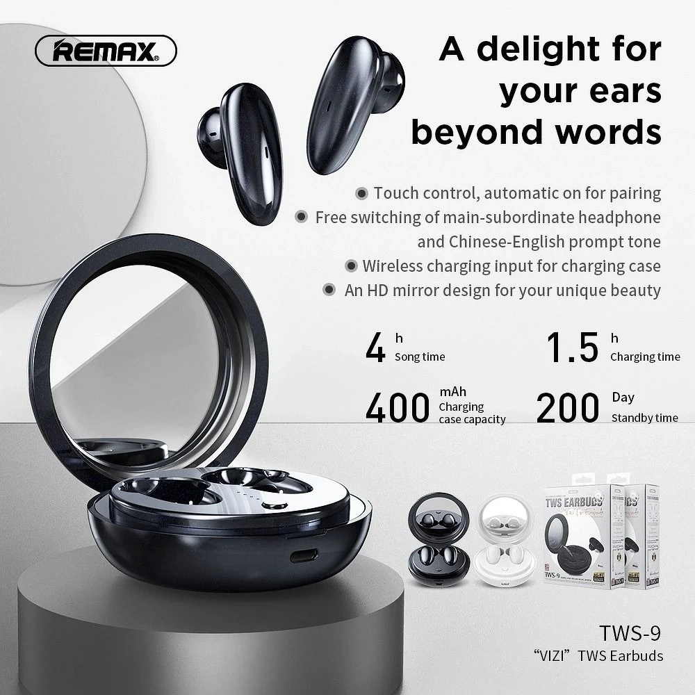 Słuchawki bezprzewodowe Bluetooth 5.0 z Etui, Lusterkiem, Białe REMAX TWS-9 x 1