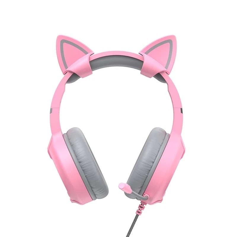 Teraz bez trudu usłyszysz nadchodzących przeciwników i jeszcze lepiej odnajdziesz się w świecie ulubionej gry. Słuchawki gamingowe Havit H2233D zapewniają fantastyczną jakość dźwięku dzięki dużym głośnikom 50 mm, a miękkie nauszniki idealnie przylegają do uszu i tłumią zbędne odgłosy. Kolorowe podświetlenie nadaje urządzeniu niepowtarzalny, gamingowy charakter, a dookólny mikrofon ułatwia komunikację z innymi graczami. Dodatkową ozdobą słuchawek są odczepiane nakładki w kształcie kocich uszu.