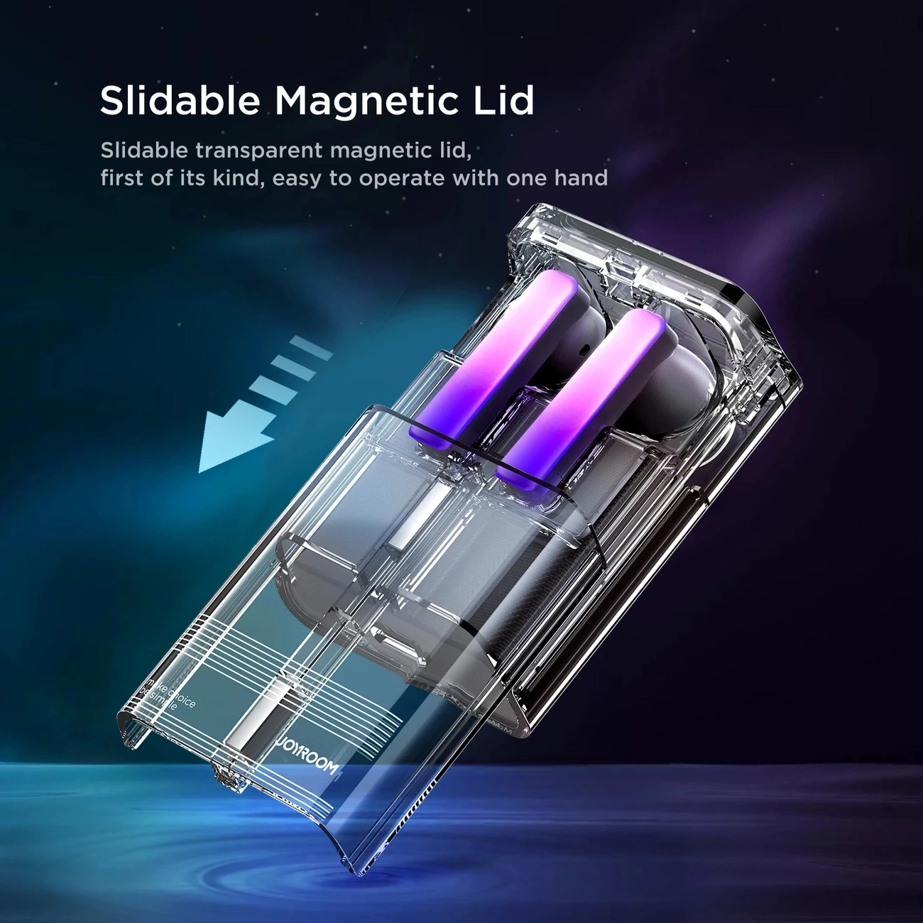 Odkryj nowy wymiar audio z słuchawkami TWS Joyroom JR-TC1 IceLens Series. Przezroczysta, przesuwna obudowa z podświetleniem w czterech trybach LED przyciąga wzrok i pozwala Ci wyrazić styl.