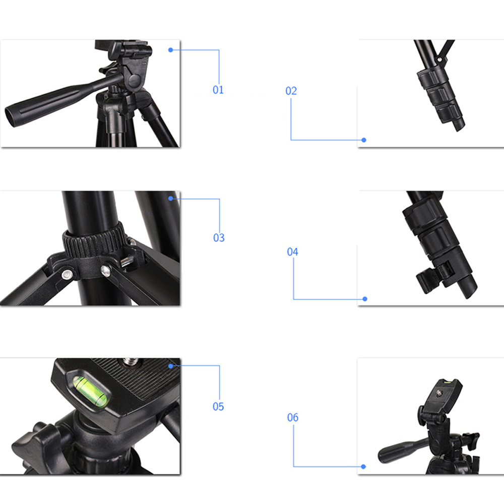 Intuicyjny statyw posiada regulację długości i obrotową głowicę 3D. Możesz dostosować wysokość statywu na kilku stopniach! Od 34 do AŻ 103cm!