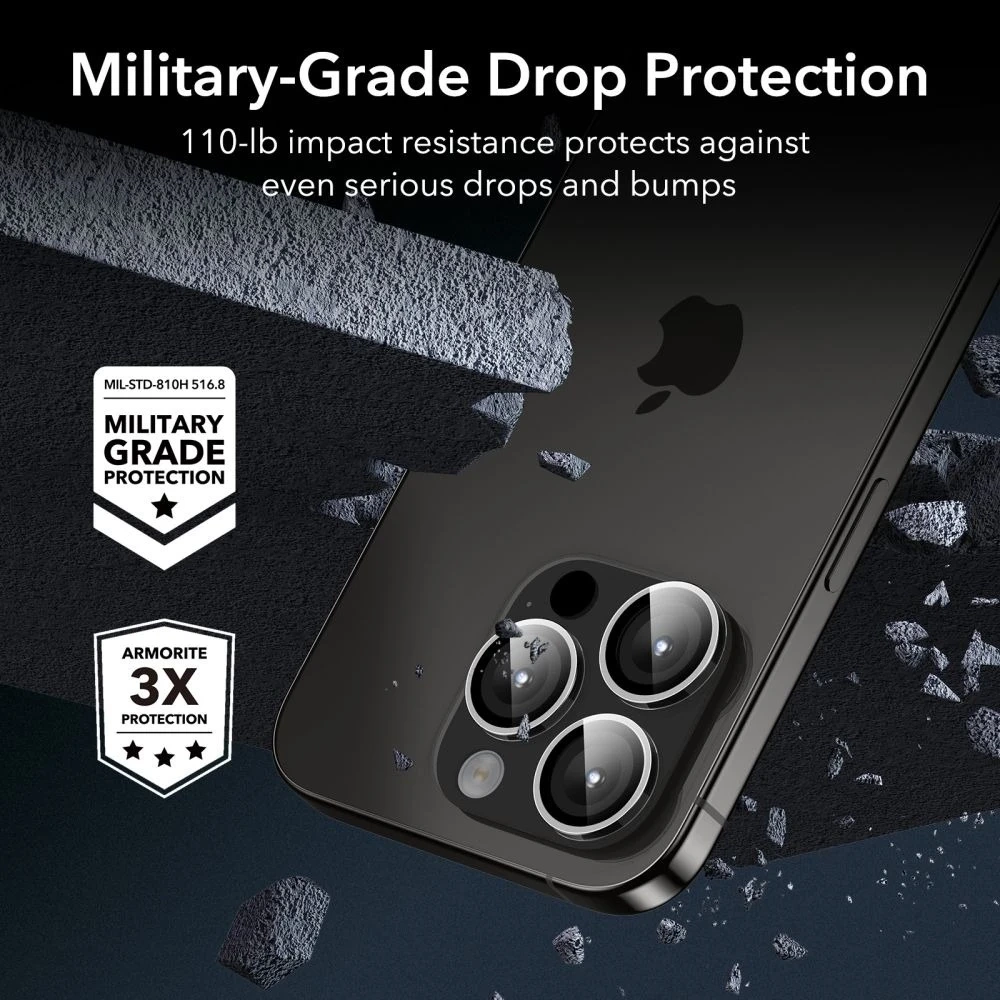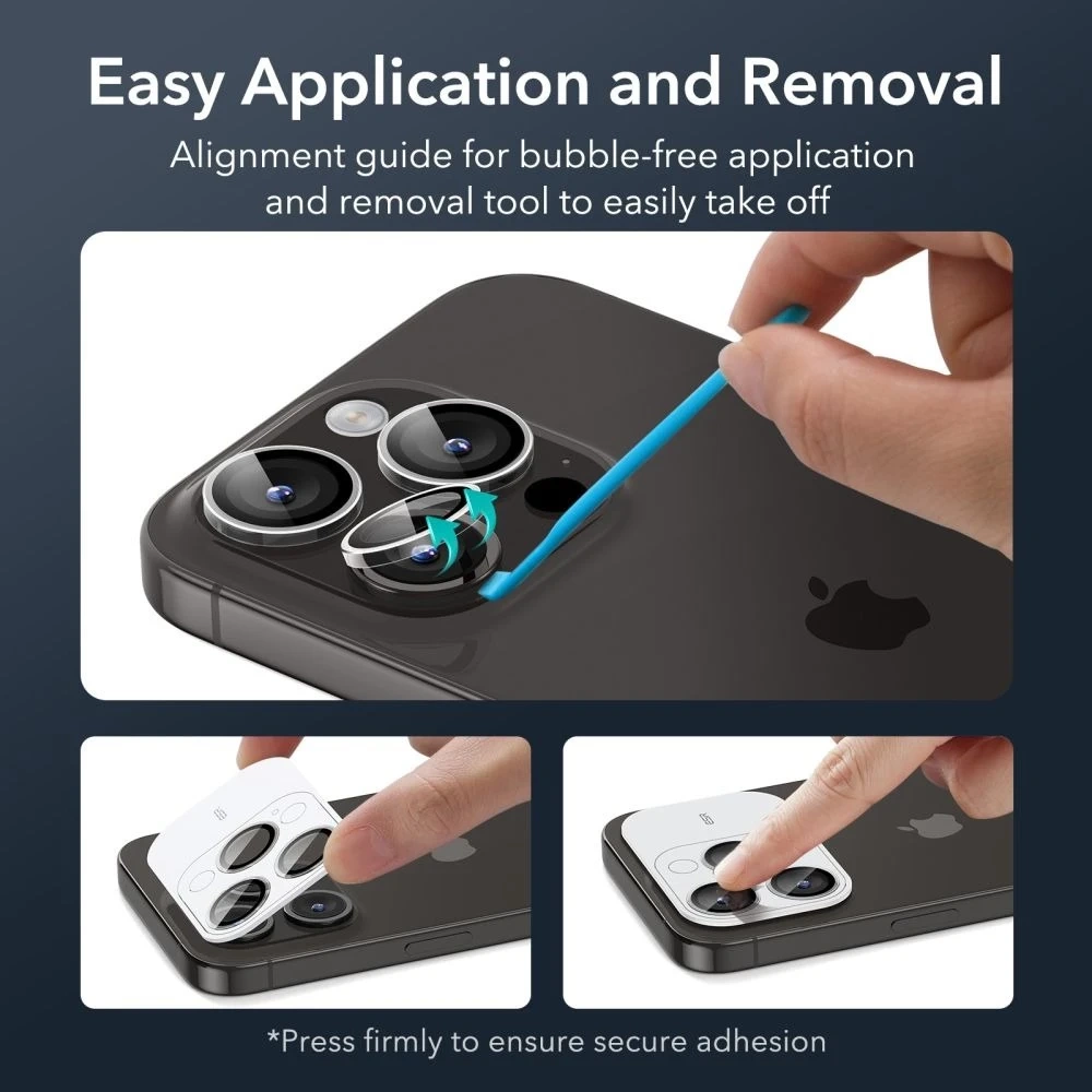 • Szkło hartowane ESR Camera Lens do iPhone 15 Pro / 15 Pro Max zapewnia pełną ochronę obiektywu aparatu przed zarysowaniami i uszkodzeniami. Przezroczyste i eleganckie, nie zmienia wyglądu telefonu, a dodaje nowoczesnego akcentu.