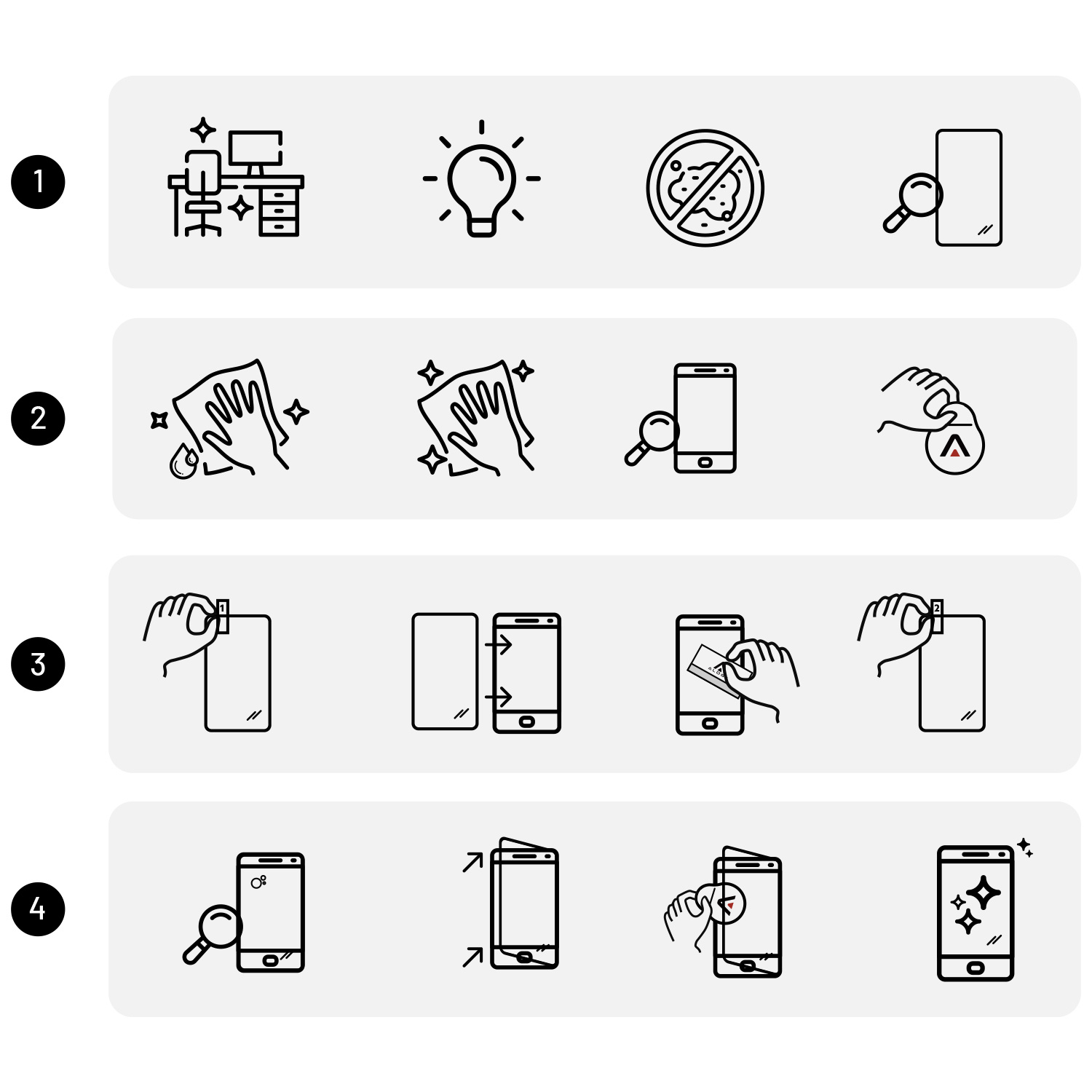 1️⃣ Przygotowanie: Odpowiednie przygotowanie to podstawa - zadbaj o czyste otoczenie, odpowiednie oświetlenie oraz brak kurzu. Przed montażem sprawdź szkło i upewnij się, że jest w pełni kompatybilne z Twoim urządzeniem.