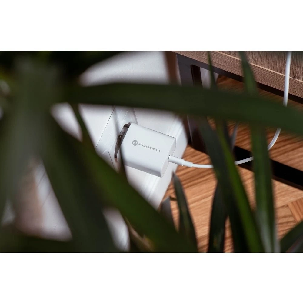 Szybka Ładowarka Forcell 25W PD QC 4.0 USB-C + kabel USB C do USB C biała x 1