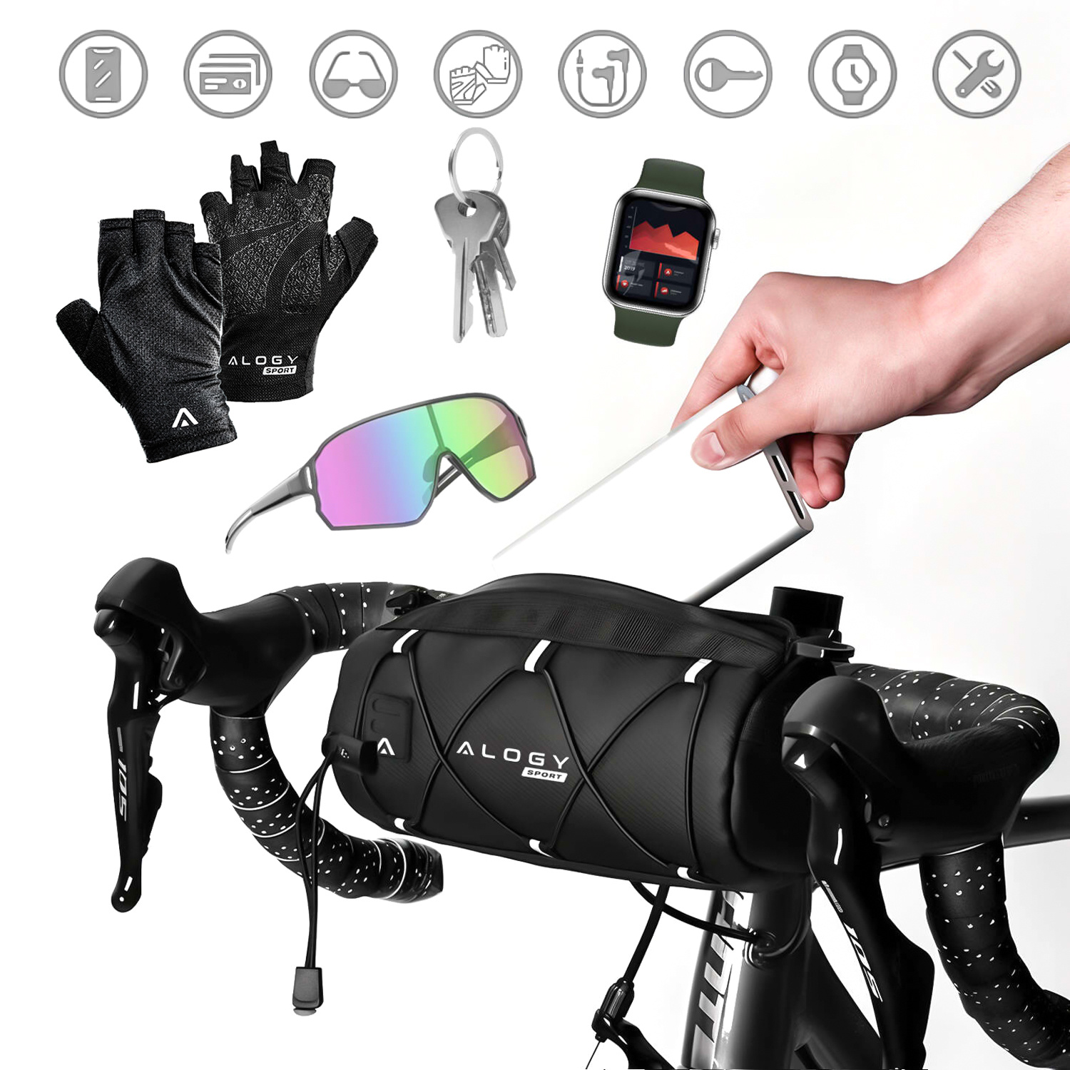 ⭐ Uniwersalny pokrowiec Alogy z serii Sport Pouch to wyjątkowej jakości, wodoodporna torba rowerowa zamykana na zamek błyskawiczny, przeznaczona do samodzielnego montażu na ramę, kierownicę roweru lub pod siodełko.