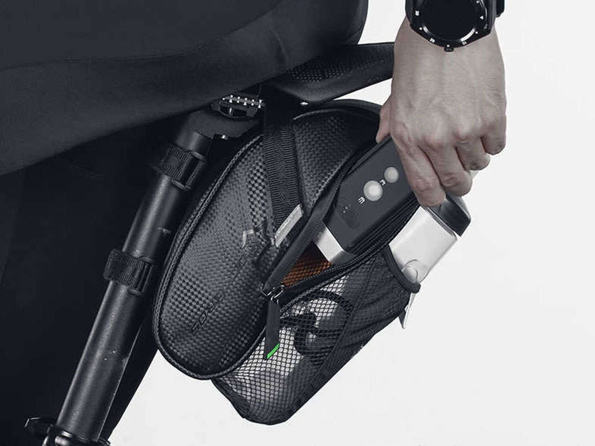 Do zestawu dołączone zostały specjalne rzepy, które pozwolą na bezproblemowy, łatwy montaż. Cała saszetka wykończona jest z najwyższą precyzją. Dodatkowo, posiada elementy odblaskowe które niewątpliwie wpłyną na zwiększenie bezpieczeństwa podczas poruszania się po zmroku. Specjalny uchwyt umieszczony na saszetce pozwala na zamocowanie dodatkowego światełka.