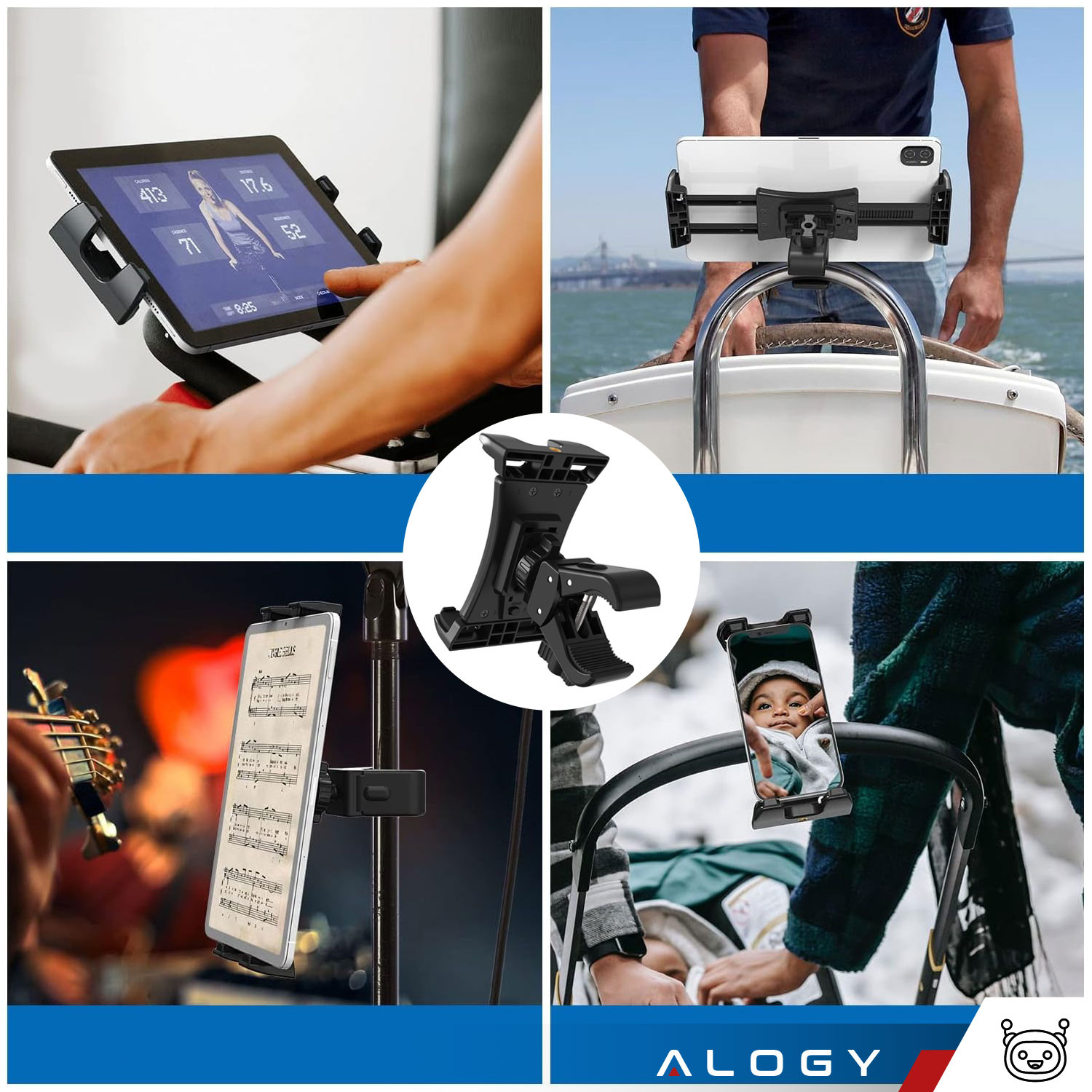 Uchwyt na tablet telefon 4.7"-12.9" na drążek, statyw, kierownicę do trenażera, roweru stacjonarnego, bieżni, na zagłówek podstawka Alogy czarny x 1