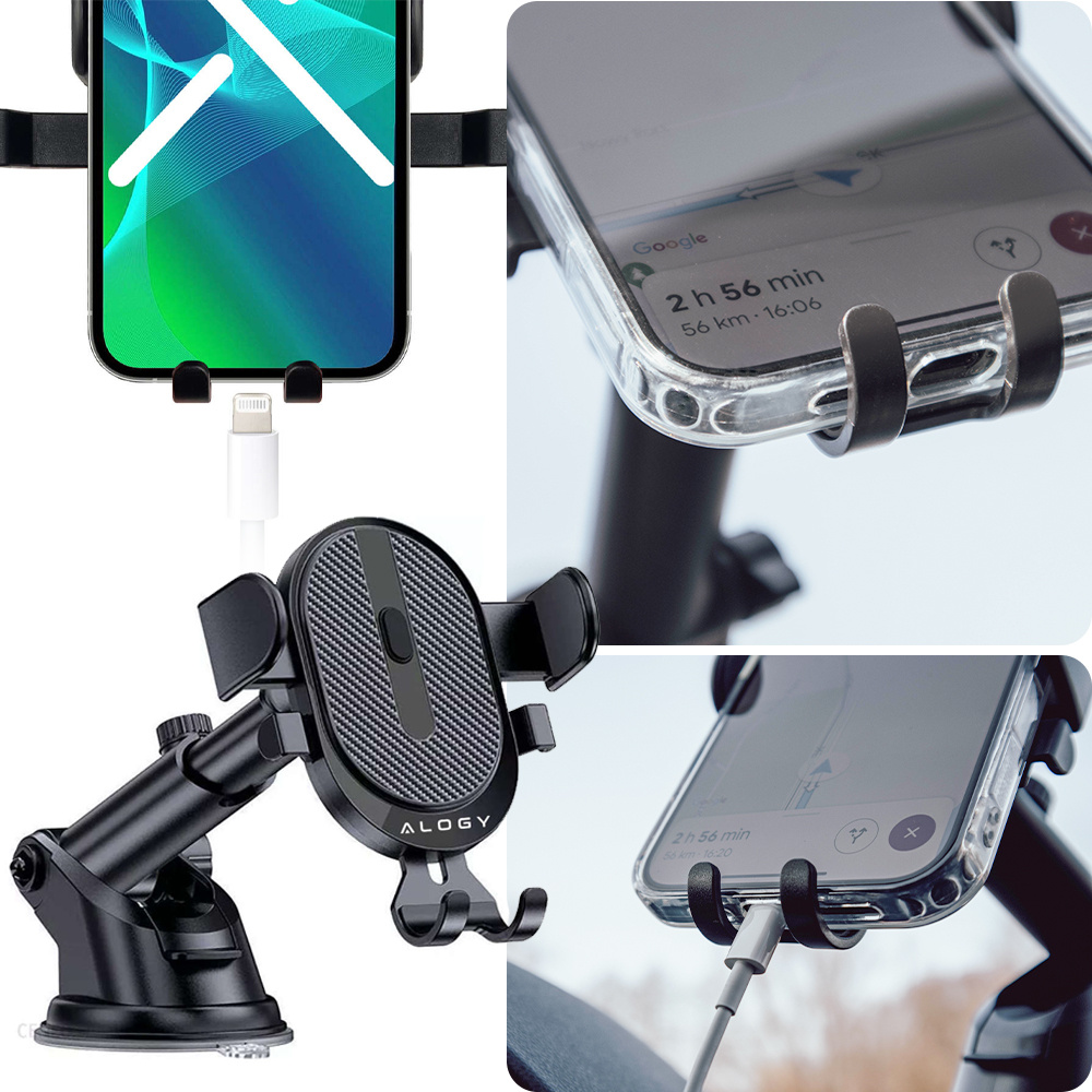 Uchwyt samochodowy 2w1 Alogy do telefonu 6.5" grawitacyjny na szybę, deskę rozdzielczą, kratkę Easy One Touch Czarny x 1