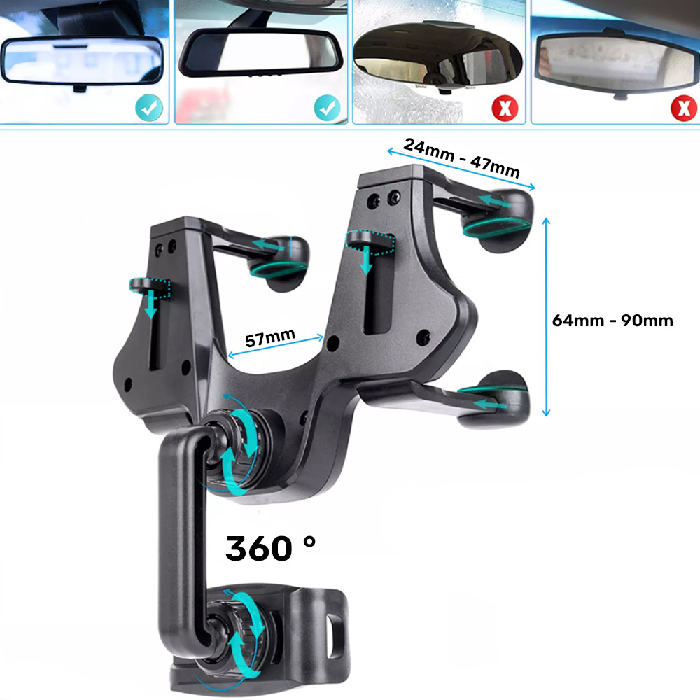 Uchwyt posiada miękkie, antypoślizgowe nakładki w wewnętrznej części szczęk zaciskowych, które zadbają o bezpieczeństwo naszego urządzenia jak i lusterka. Uchwyt wyposażony został w dwie obrotowe głowice, które możemy regulować o 360 stopni.