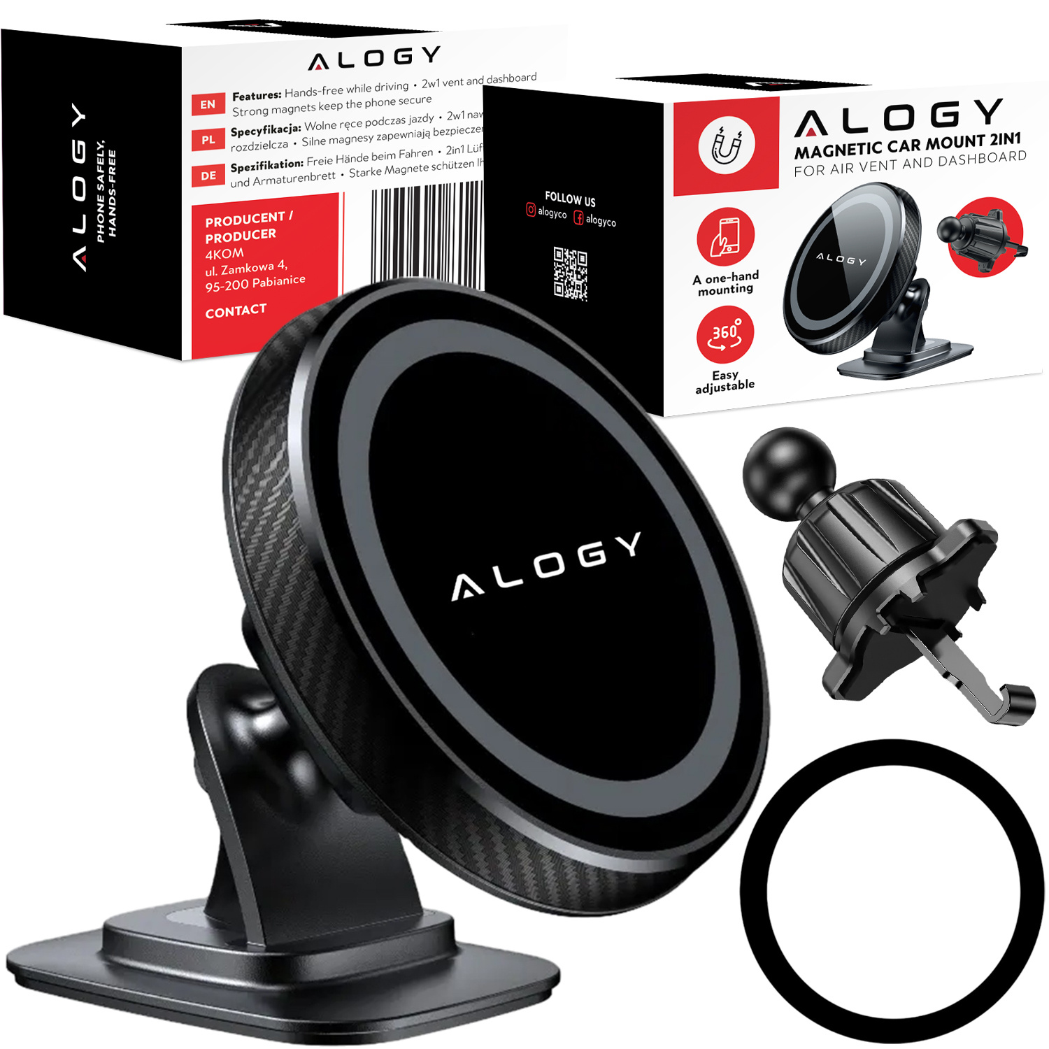 Uchwyt samochodowy magnetyczny na telefon szybę kratkę kokpit deskę do samochodu auta do telefonu Alogy Czarny + Organizer x 1