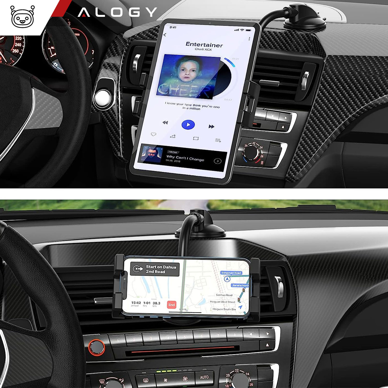 Uniwersalny uchwyt samochodowy na deskę rozdzielczą/ szybę to nowoczesny oraz bardzo praktyczny produkt od marki Alogy.