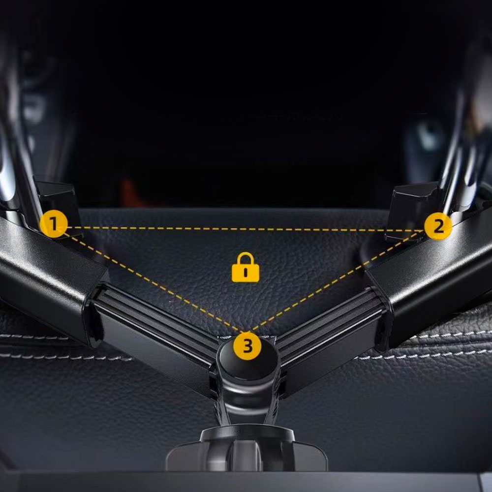 Uchwyt montowany jest do zagłówka przy pomocy specjalnych wsuwek, które po prawidłowym montażu będą mocno i stabilnie trzymać się zagłówka.
