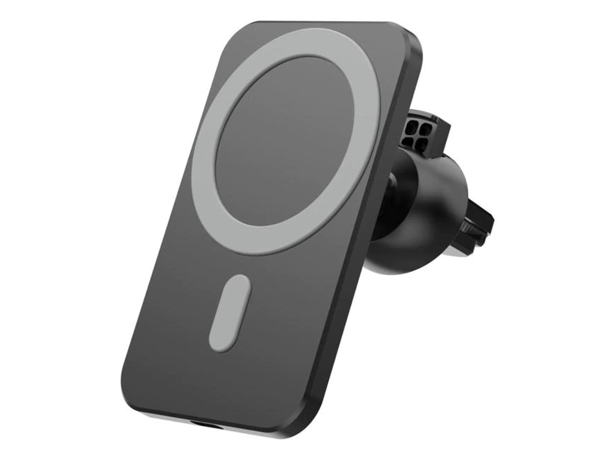 Ładowarka kompatybilna jest z urządzeniami Apple iPhone 13 / 13 Mini / Pro / Pro Max / iPhone 12 Mini, iPhone 12, iPhone 12 Pro, iPhone 12 Pro Max, oraz oficjalnym pokrowcem MagSafe na iPhone'a 12. Urządzenie posiada specjalny uchwyt na kratę samochodową co sprawia, że ładowarka to gadżet niezwykle przydatny w podróży. Dodatkowo, głowica kulkowa uchwytu pozwala na dowolne ustawienie uchwytu obracając go o 360 stopni.