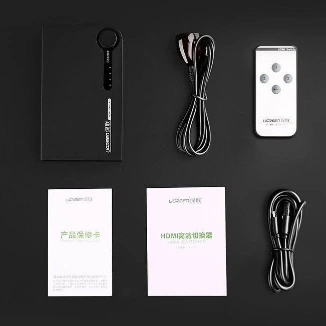 Ugreen przełącznik rozdzielacz splitter switch HDMI - 3x HDMI 3D 4K 7,5 Gbps 36 bit na kanał czarny (40234) x 1