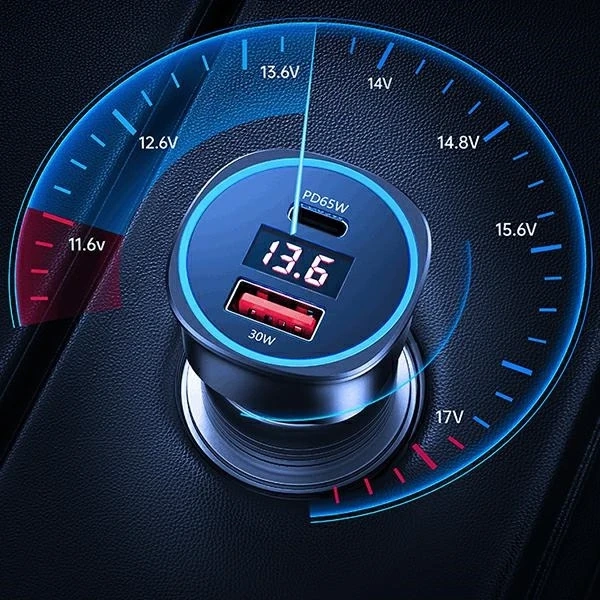 USAMS Ładowarka samochodowa 1xUSB+1xUSB-C C26 95W (only head) Fast Charge czarny/black CC146TC01 (US-CC146)