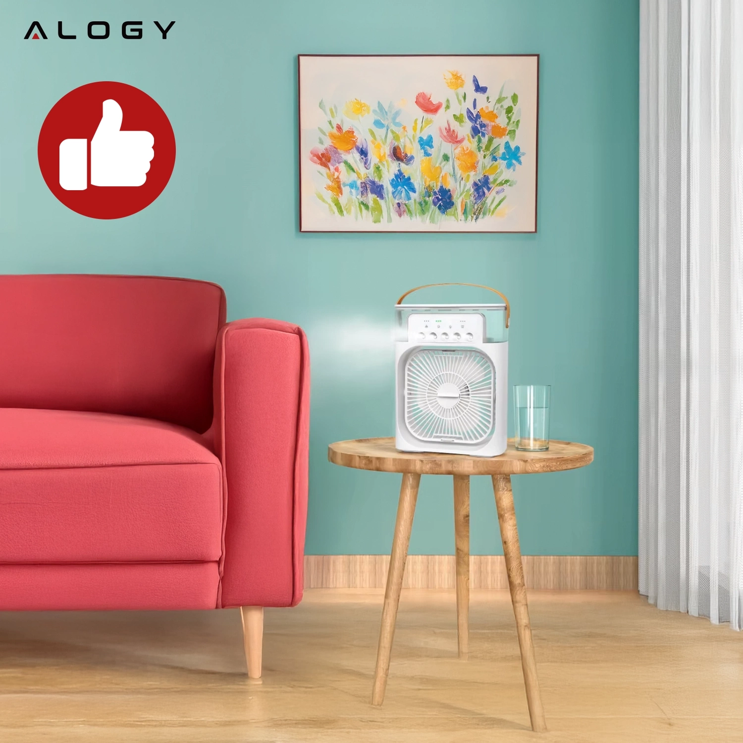 ✅ Nasz wentylator Alogy 3w1 łączy funkcję nawilżacza z chłodzeniem parowym, tworząc naturalną mgiełkę, która łagodzi duszność i przywraca świeżość w pomieszczeniu. Dzięki technologii AquaCool™ temperatura wokół Ciebie spada, a powietrze zyskuje lekkość – jak po deszczu w upalny dzień.