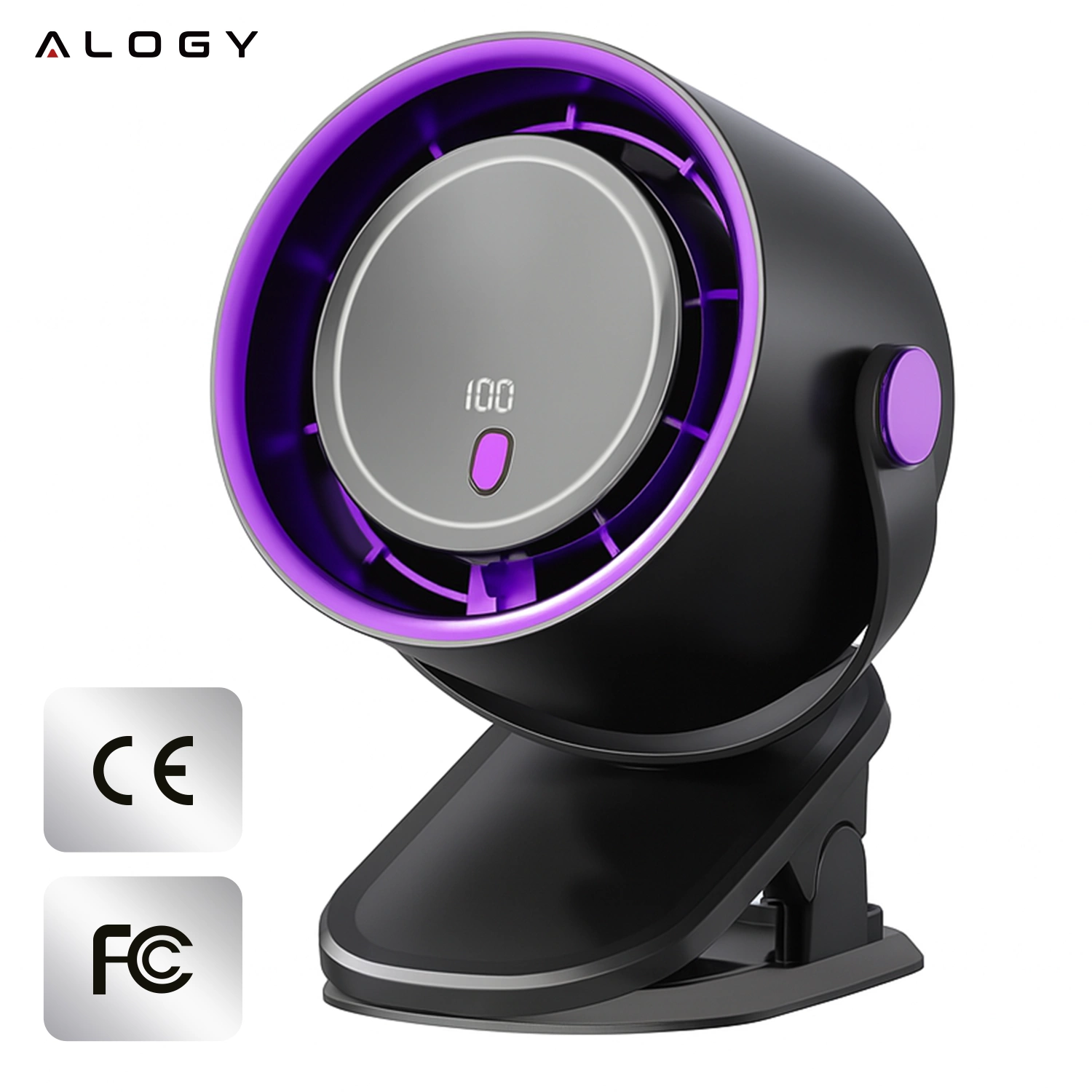 Wentylator Alogy to odpowiedź na ograniczenia tradycyjnych modeli – dzięki uniwersalnemu klipsowi możesz zamocować go do blatu, półki, wózka czy siedzenia samochodowego.