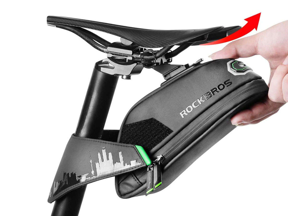 Montaż sakwy RockBros odbywa się pod siodełkiem. Dodatkowo, wewnątrz saszetki znajduje się dodatkowa kieszonka, która pozwala na uporządkowanie przedmiotów włożonych do środka.