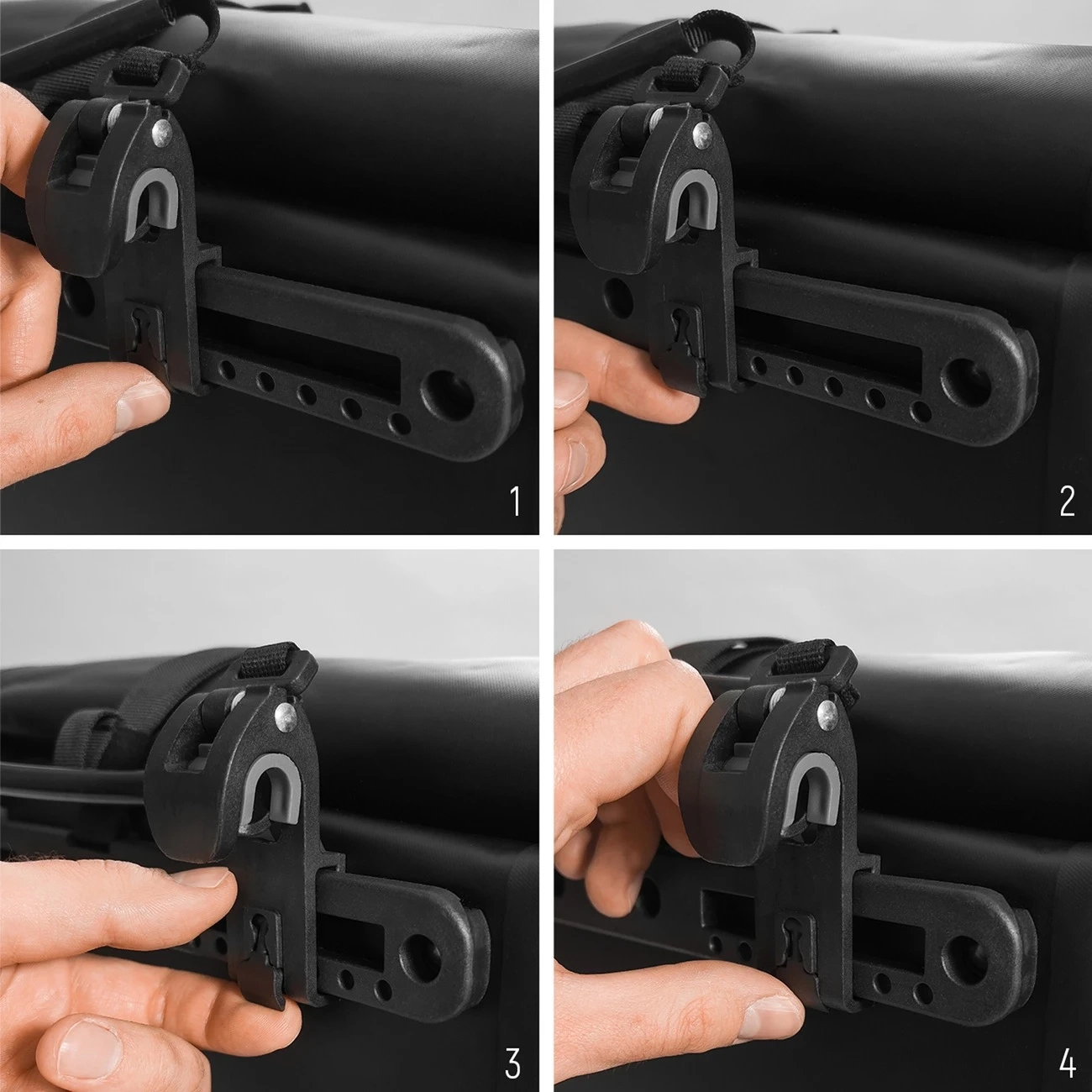 Klamry do zamocowania wodoodpornej sakwy na rower na bagażniku