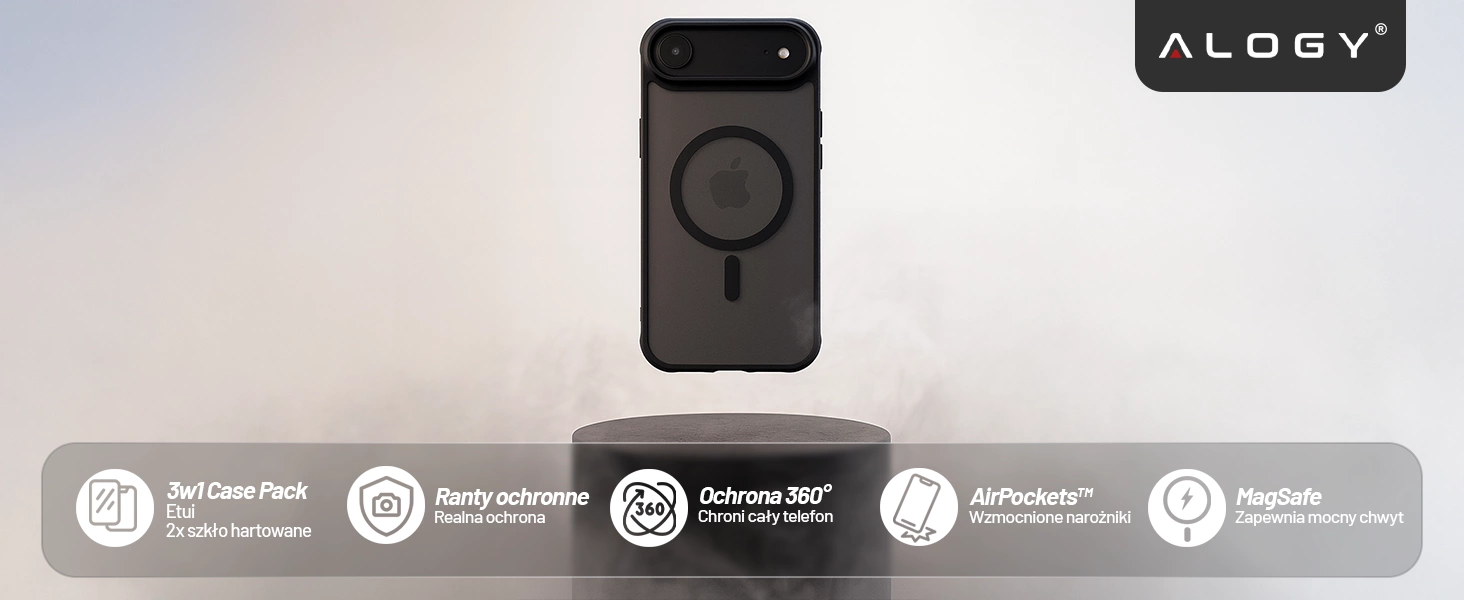 ✅ Wyobraź sobie, że nowy iPhone 17 Air od razu trafia do Twojej dłoni w pełnej ochronie – bez folii, bez stresu, gotowy do działania. Zestaw Alogy 3in1 łączy hybrydowe etui MagSafe oraz 2× szkło hartowane Heavy Pro+™, aby jeden zakup zagwarantował bezpieczeństwo na długie miesiące.